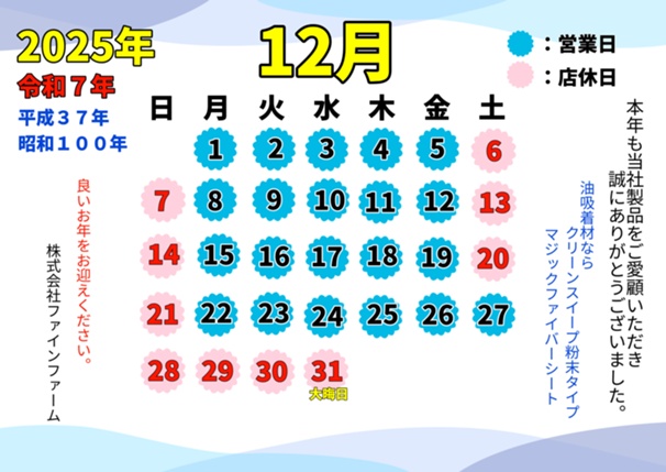 2025年(令和7年) 12月の営業日